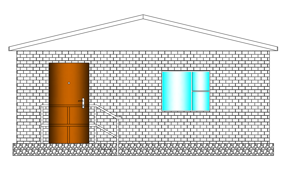 10x8m community hall guard room building left side elevation 2d Auto CAD model is given. In this building, the meeting hall window, and side door is available.