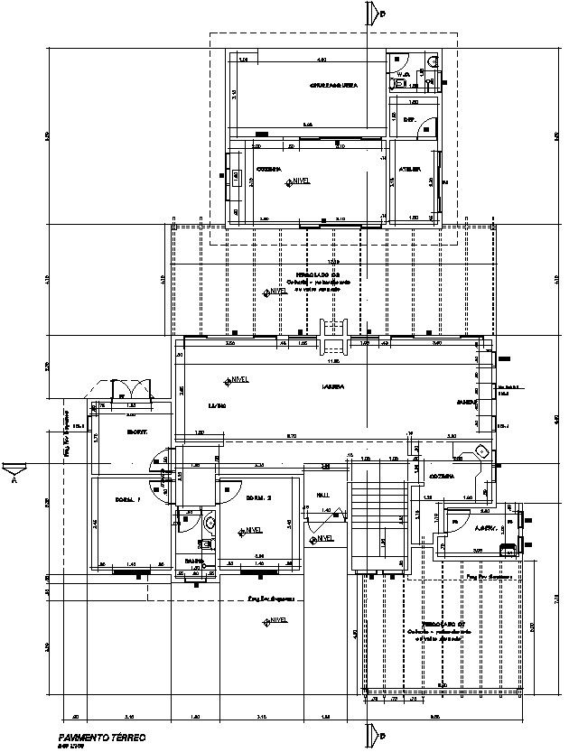 THis Architectural drawing is AutoCAD 2d drawing of Ground floor plan with dimension detailing. It shows the placement of walls and includes key elements of the house like doors, windows, stairs , and main furniture. It also communicates the room names and sizes, as well as the dimensions between walls. Room dimensions are displayed as width by length. For example, a room that has a dimension of 10' x 12' means that it is 10 feet wide by 12 feet long. For more details and information download the drawing file.
