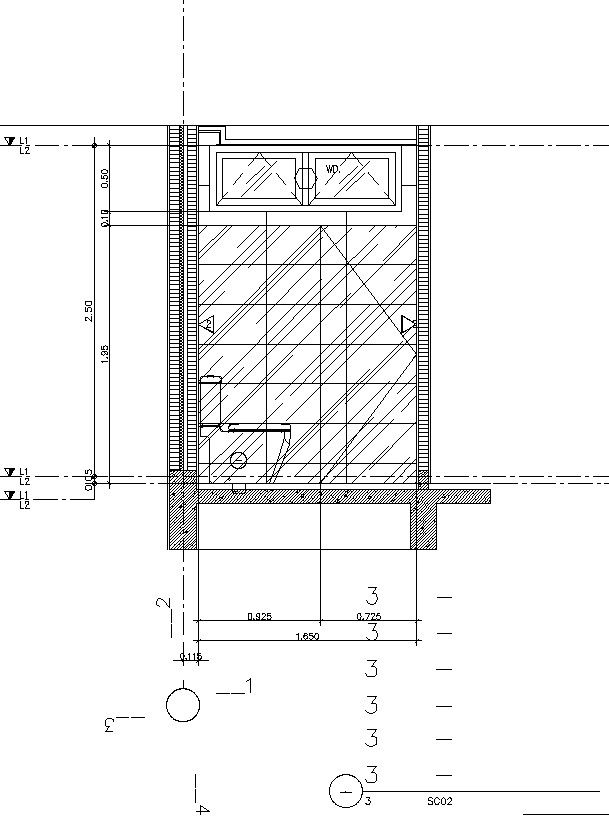 This architectural drawing is Elevation of toilet with partition. In this drawing there were height is 2.50m, length is 1.650m. There were also given glass partition wall and also given ventilator. For more details and information download the drawing file.