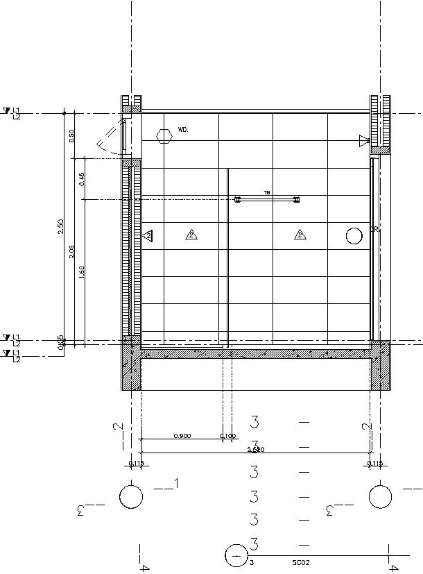 This architectural drawing is Elevation of bathroom with detailing. In this drawing there were given attached toilet and bathroom with glass partition wall. There were size of door is 0.50m given. Total length of bathroom is 2.520m given. For more details and information download the drawing file.