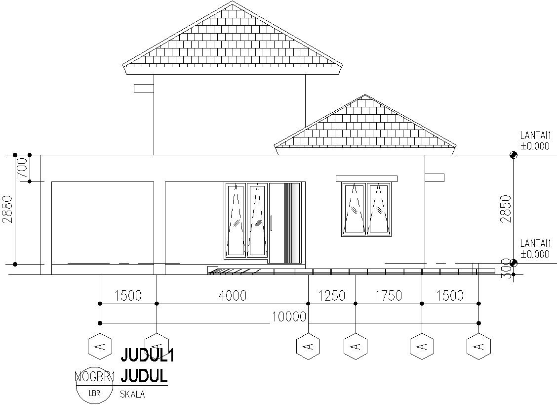 This architectural drawing is Front elevation of 2 storey house. In this drawing there were given length of the house is 10000 and height of the house is 2880. The front elevation is the front-facing of the building or house in architecture. For more details and information download the drawing file.