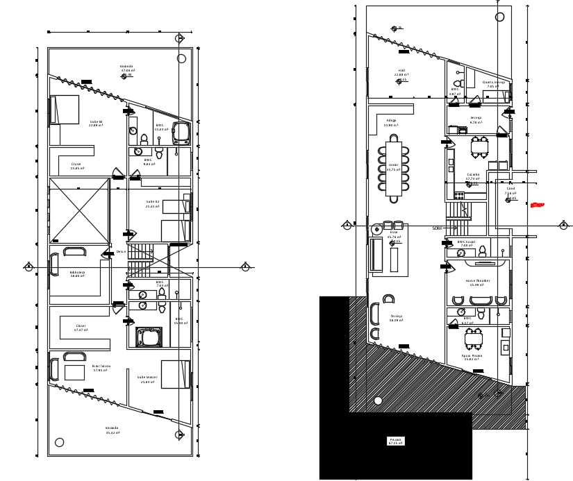 10x29m bungalow house plan ground and first floor drawing is given in this file. This is two story house building. Here, an area of each room is given. On this ground floor, a car parking, swimming pool, swimming pool sitting area, living room, home theatre, common bathroom, canil, kitchen, dining room, maid room with the attached bathroom, storeroom, and hall is available. On this first floor, the maser bedroom with the attached bathroom, children’s bedroom with the attached bathroom, two guest bedroom, verandah, and two common bathroom is available.