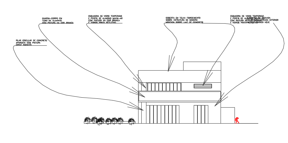 The front elevation view of the 10x29m bungalow building is available in this drawing. This is a main elevation view. Here, the main door, and swimming pool dress changing front door view is given.