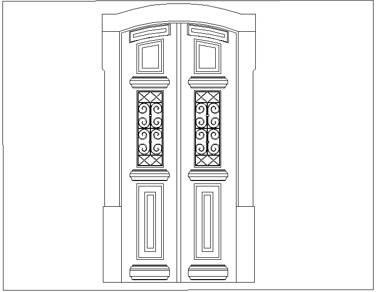 Door designer view dwg file with door view with circular shape design and rectanguar