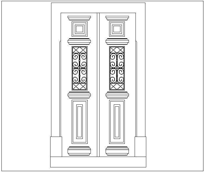 Door design with historical view dwg file with door view with designer grill and shape