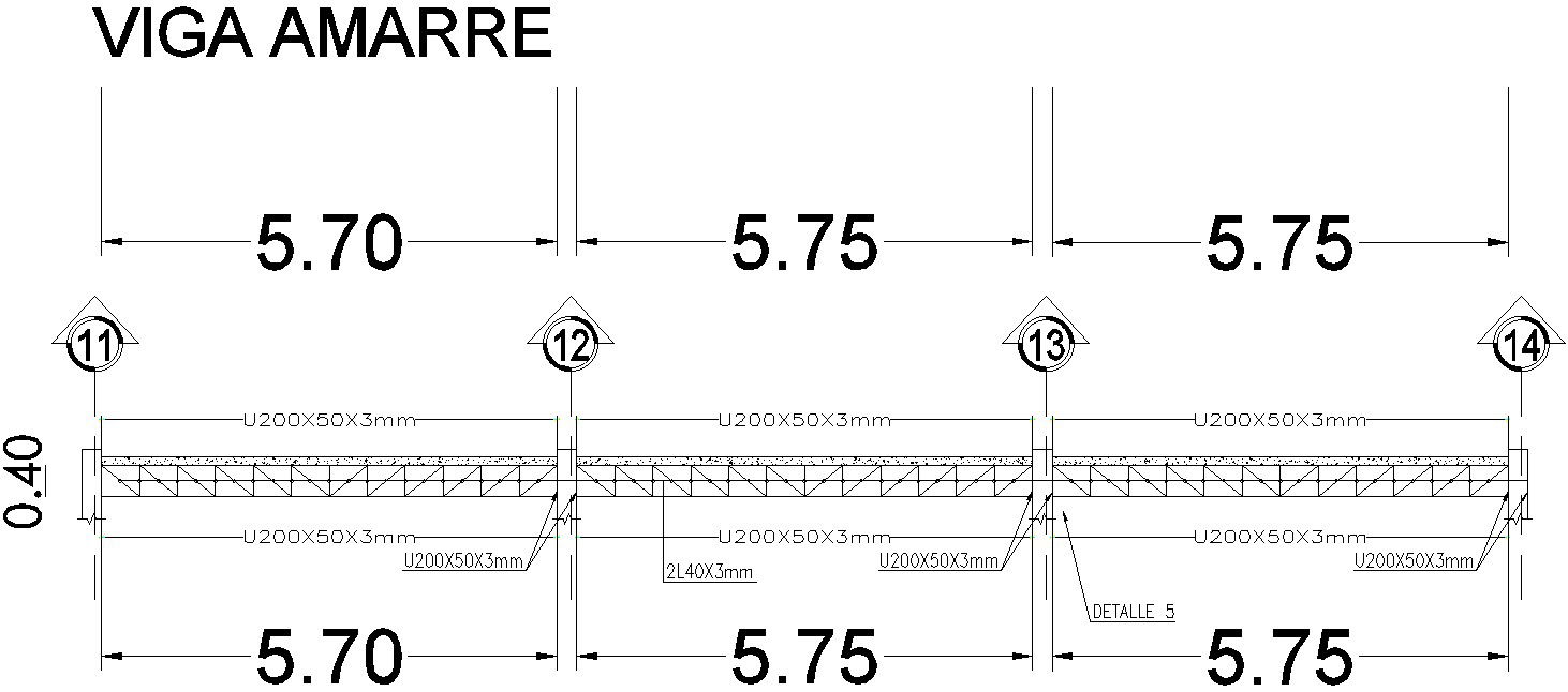 This architectural drawing is Tie beam design with detailing. In this drawing there were length is 5.70, 5.75 and 5.75 is given. There were section size is 200x50x3mm is given. For more details and information download the drawing file.