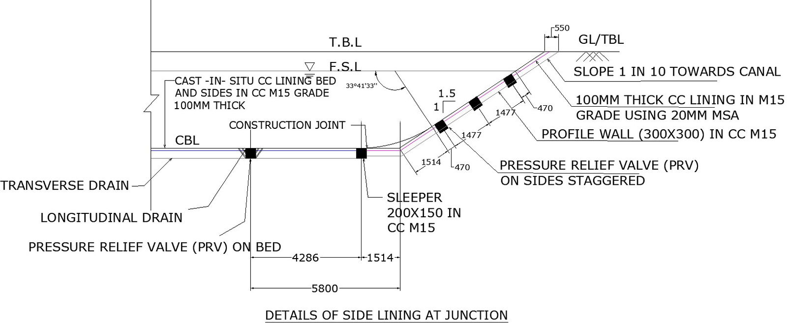This Architectural Drawing is AutoCAD 2d drawing of SIDE LINING AT JUNCTION Detail Drawing. Canal lining is the process of reducing seepage loss of irrigation water by adding an impermeable layer to the edges of the trench. Seepage can result in losses of 30 to 50 percent of irrigation water from canals, so adding lining can make irrigation systems more efficient. For more details and information download the drawing file.