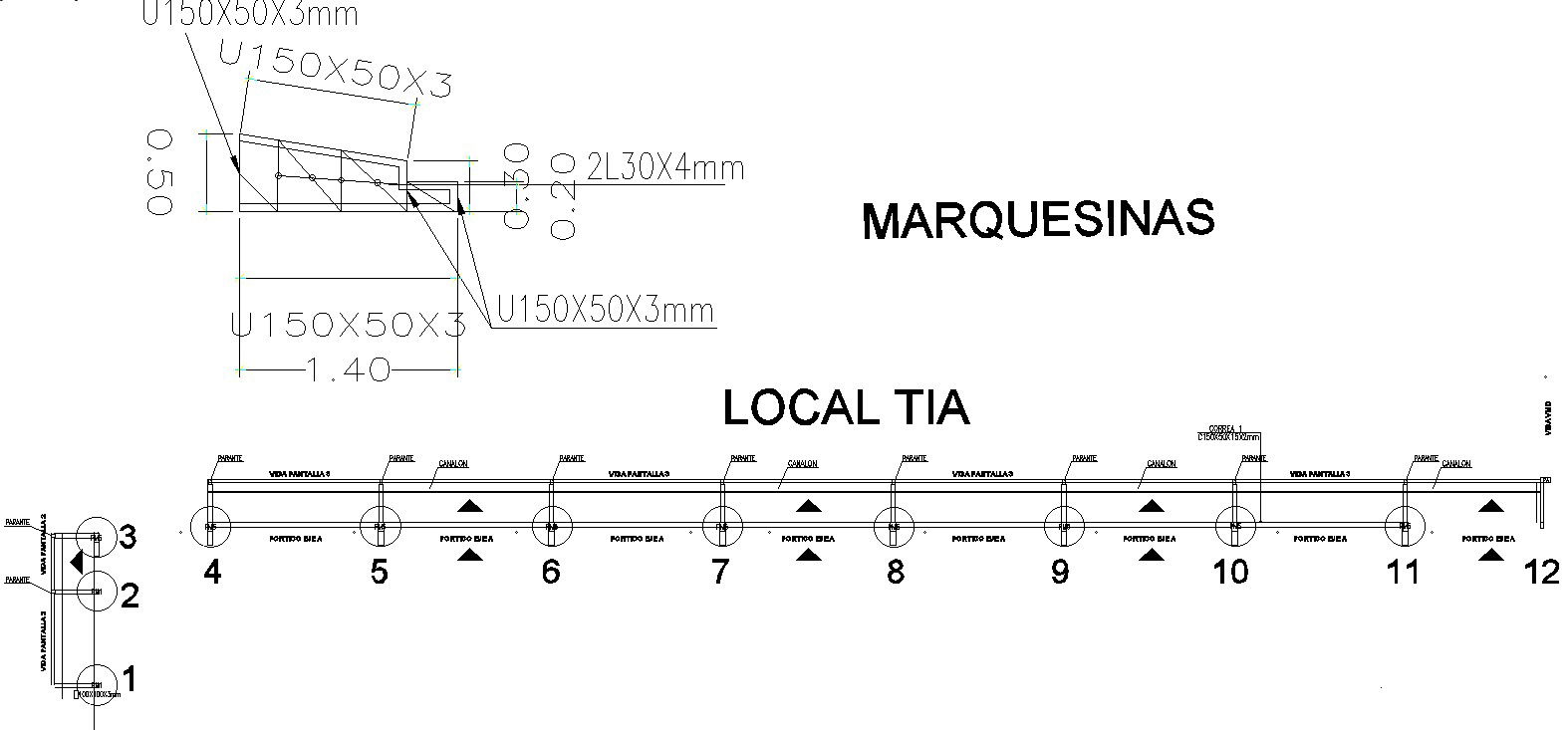 This architectural drawing is Design of canopies with detailing. A canopy is an overhead roof structure that has open sides. Canopies are typically intended to provide shelter from the rain or sun, but may also be used for decorative purposes, or to give emphasis to a route or part of a building. In this drawing there were given section is 150x50x3mm. For more details and information download the drawing file.