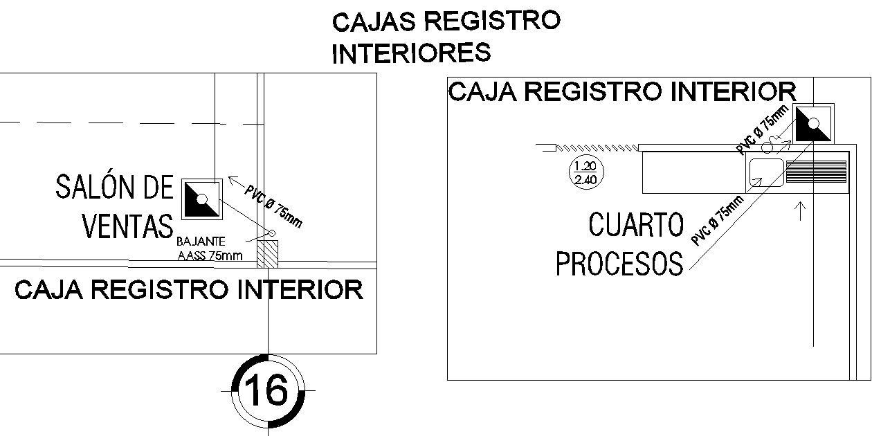 This architectural drawing is Detail drawing of sales room. In this drawing there were sales room, interior register boxes attached with 75mm diameter PVC pipe are given. For more details and information download the drawing file.
