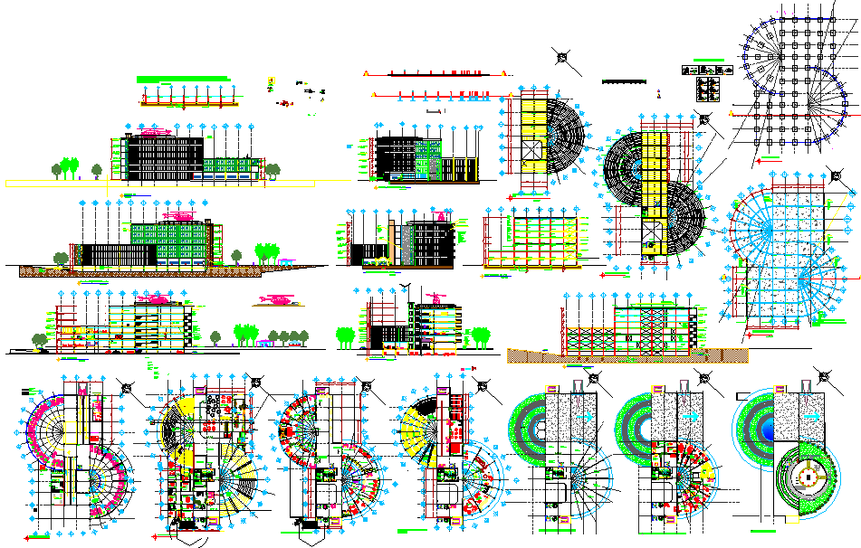Corporate Center, architecture layout with detailing, sectional plan, structure plan, constructional details, sectional elevation of individual floor.