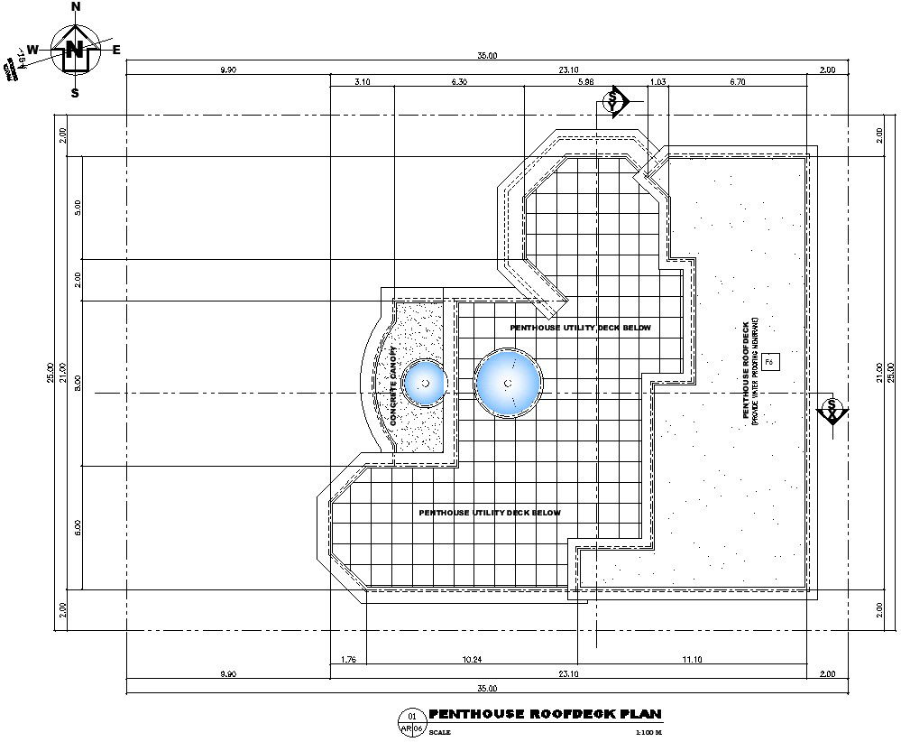 Pent house roof deck plan AutoCAD drawing