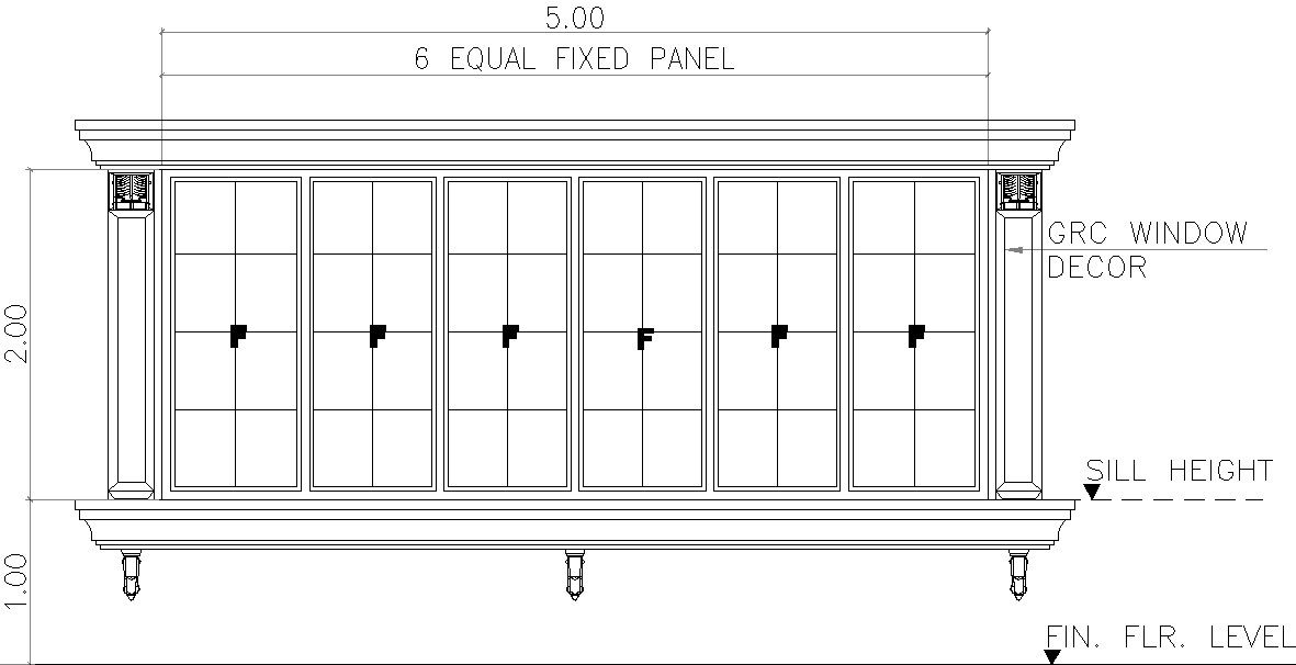 This architectural drawing is Section drawing of window AutoCAD drawing. In this drawing there were size of window is 5x2m is given. There were 6 equal panel are available in window. For more details and information download the drawing file.