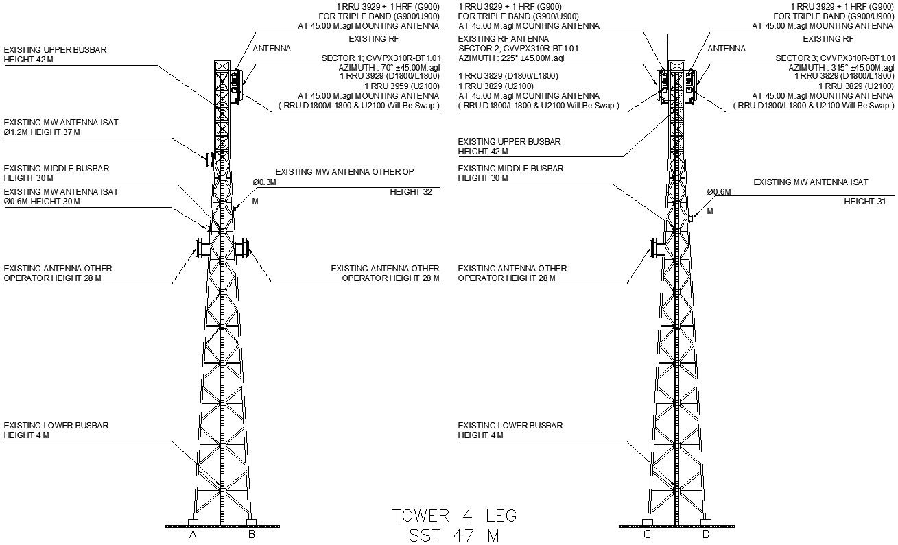 This architectural drawing is Design of tower in detail AutoCAD drawing. Tower Height means the vertical distance measured from the base of the tower structure at grade to the highest point of the structure including the antenna. For more details and information download the drawing file.