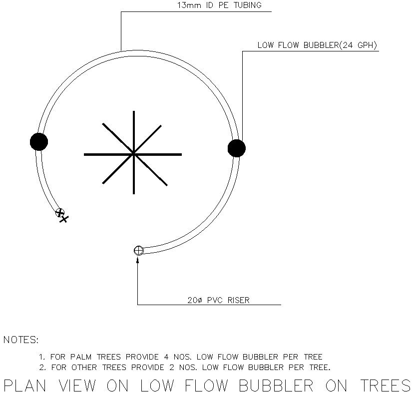 Plan view on low flow bubbler on trees in detail AutoCAD drawing
