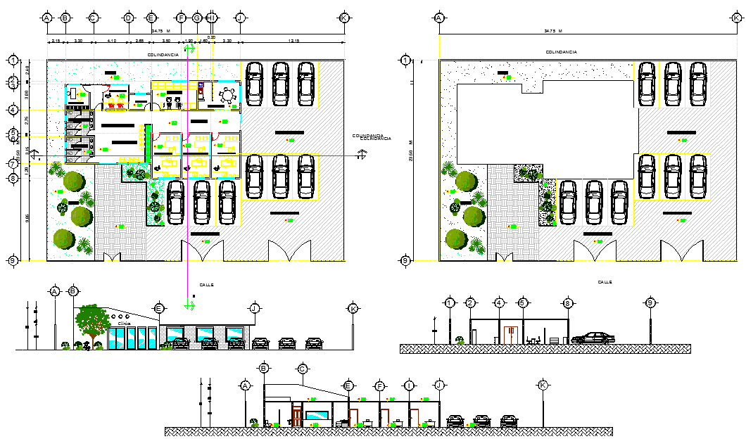 Medical Clinic, architecture layout, sectional plan, sectional elevation, exterior elevation.