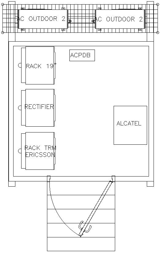 This architectural drawing is Detail drawing of tower cabin in AutoCAD 2D. In this drawing there were two AC outdoors, 19" rack, rectifier, door etc. are given with details. For more details and information download the drawing file.