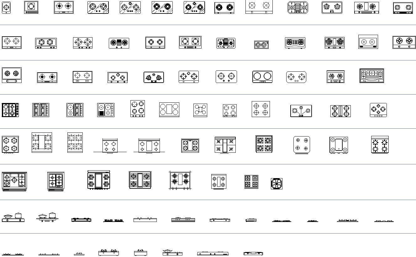 Electric gas stove blocks including in this file show different typ of electric stove blocks and also elevation too for more details of Electric gas stove blocks download Autocad file , cad drawing , dwg format .