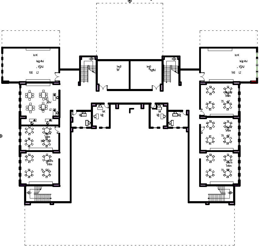 Second floor layout of a university with furniture layout.