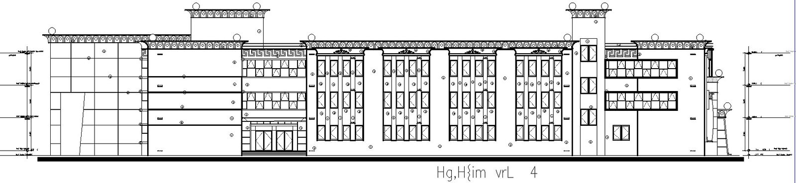 This architectural drawing is Right side elevation of university plan in detail AutoCAD drawing. In this drawing there were right side view of university is given with details and drawing. For more details and information download the drawing file.
