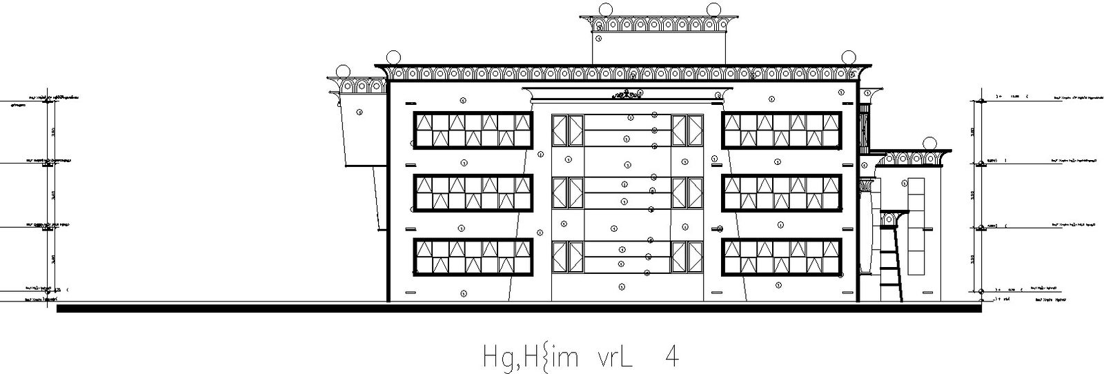 Right side elevation of arts university in detail AutoCAD drawing