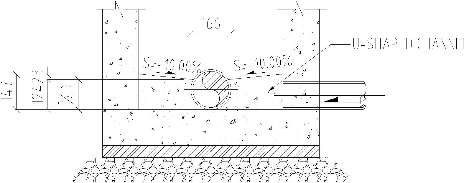 This architectural drawing is Side section of manhole in AutoCAD 2D drawing. In this drawing there were channel size is 147mm diameter is given. There were U shaped channel is given. For more details and information download the drawing file.