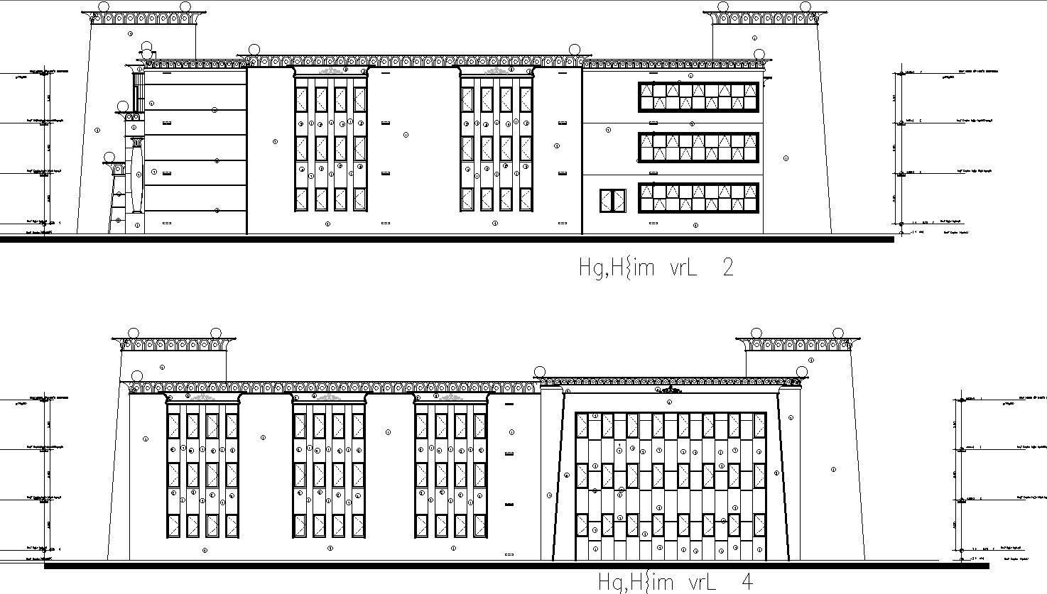 Left and Right side elevation of pharmacy college with detail AutoCAD drawing