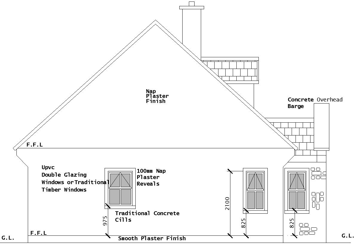 This architectural drawing is Back side exterior work of house in detail AutoCAD drawing. In this drawing there were concrete overhead barge, nap plaster finish, UPVC double glazing windows, traditional concrete cills, nap plater reavels etc. given with details. For more details and information download the drawing file.