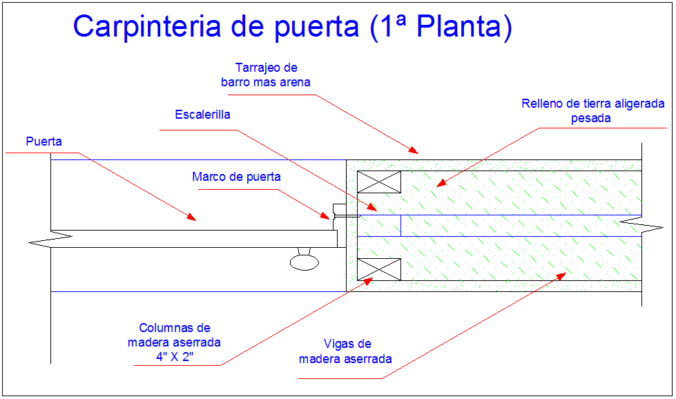 and Lightened earth fill view with frame in Construction detail of wall and door.