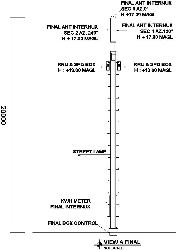 This architectural drawing is Side view of street pole in detail AutoCAD drawing. In this drawing there were street lamp, control box, meter box, etc. are given with details. For more details and information download the drawing file.