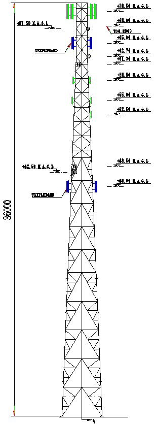 This architectural drawing is Design of tower with detail AutoCAD drawing. In this drawing there were height of the tower is 36 meter given. There were antenna placement is also given with details. For more details and information download the drawing file.