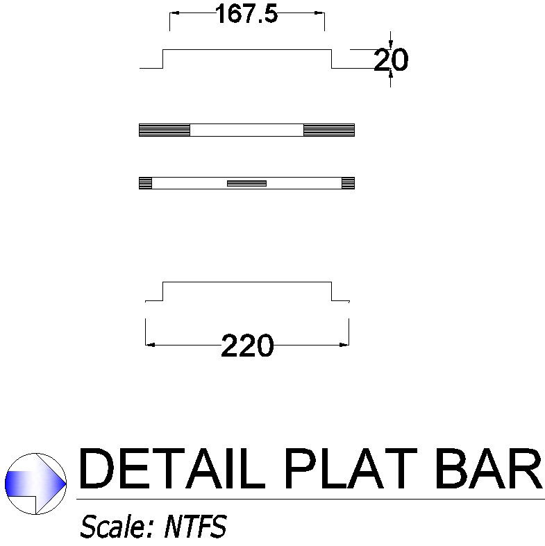 This architectural drawing is Detail plate bar in AutoCAD drawing, dwg file, CAD file. In this drawing there were size of the plate is 167.5x20mm is given. For more details and information download the drawing file.