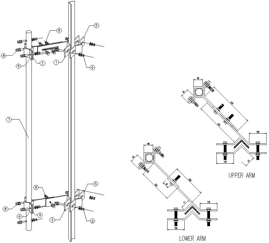 This architectural drawing is Electric pole with antenna design in detail AutoCAD drawing, CAD file, dwg file. In this drawing there were lower arm and upper arm of antenna is given with details and dimensions. For more details and information download the drawing file.