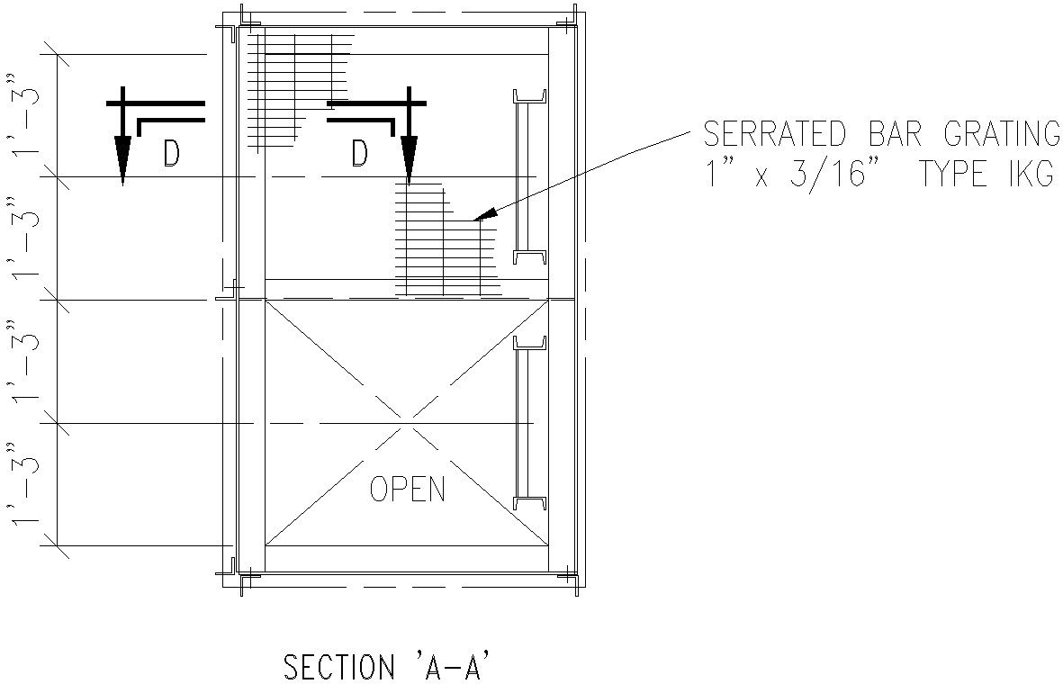 Section AA of ladder construction with detail AutoCAD drawing, CAD file, dwg file