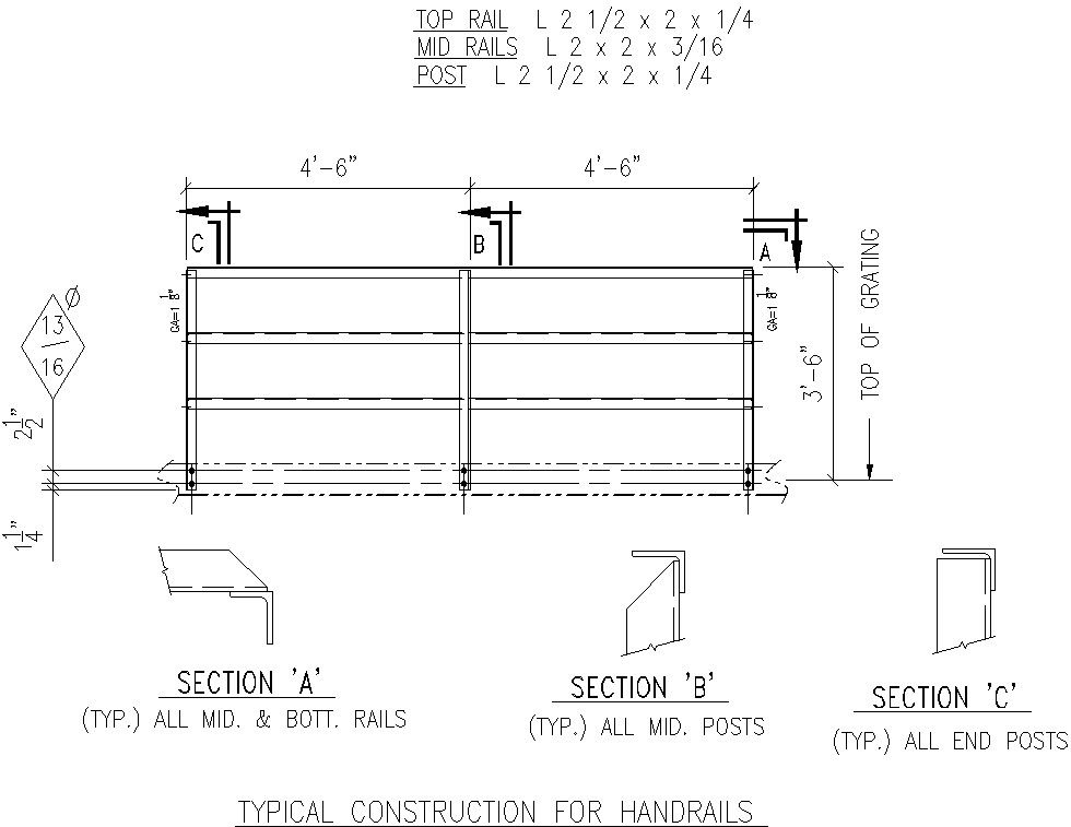 This architectural drawing is Typical construction for handrails in detail AutoCAD drawing, CAD file, dwg file. In this drawing there were section a, section b and section c is given with details. For more details and information download the drawing file.