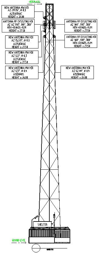 This Architectural Drawing is AutoCAD 2d drawing of Tower details Drawings in AutoCAD , Dwg files. Whenever a cell phone is used, it emits an electromagnetic radio wave, called a radio frequency, that is received by the nearest cell tower's antenna. Once the cell tower receives this signal, it will transmit the signals to a switching center. For more detailsa nd information download the drawing file.