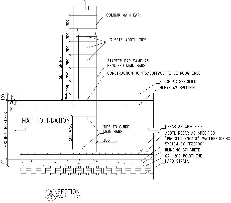 Mat Foundation DWG File with Main Bar and Column Section Details