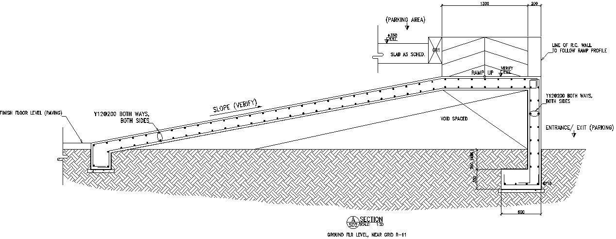 This Architectural Drawing is AutoCAD 2d drawing of Parking area slope details in AutoCAD, Dwg files. The maximum slope for a garage ramp should be within 20%, as indicated by most national regulations worldwide. However, a 20% slope that is not well connected will avoid damaging the bottom part of the car. For more details and information download the drawing file.