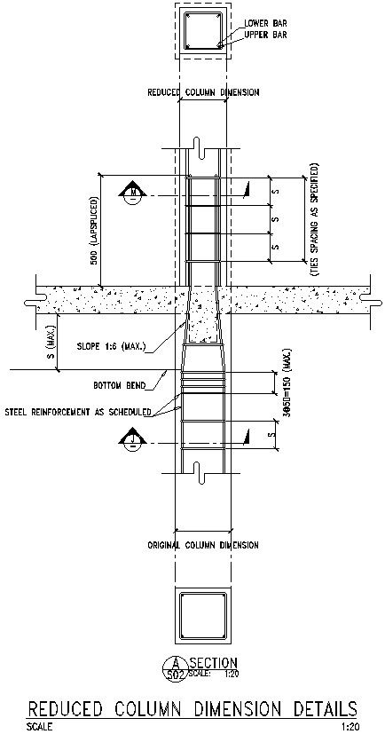 This Architectural Drawing is AutoCAD 2dd rawing of Reduced Column dimensions details in AutoCAD, dwg files. If the size of column is smaller than the minimum allowable size at the base of the structure, then reinforcement ratio can be decreased. Finally, both reinforcement ratio and concrete compressive strength can be decreased as the imposed factored loads decline in the upper storeys. For more details and information download the drawing file.
