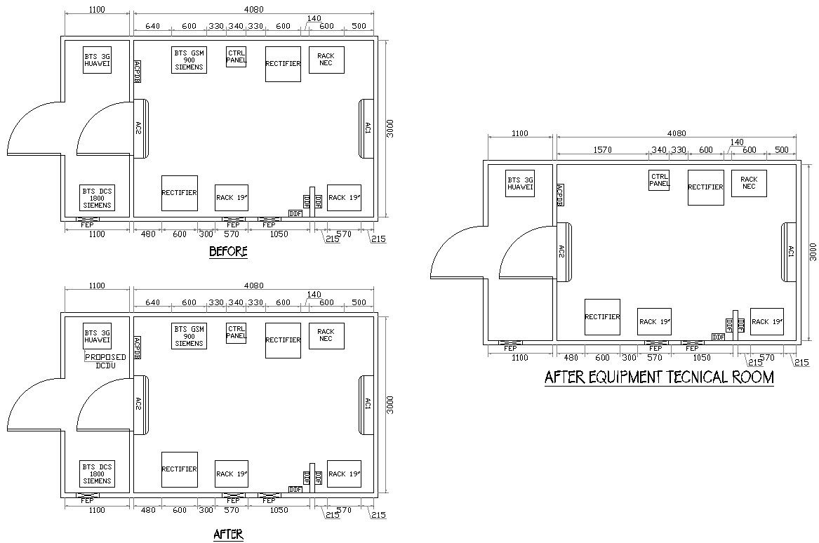 This architectural drawing is After equipment technical room design with detail AutoCAD drawing, dwg file, CAD file. In this drawing there were rectifier, control panel, 19" rack, etc. are given with details. For more details and information download the drawing file.