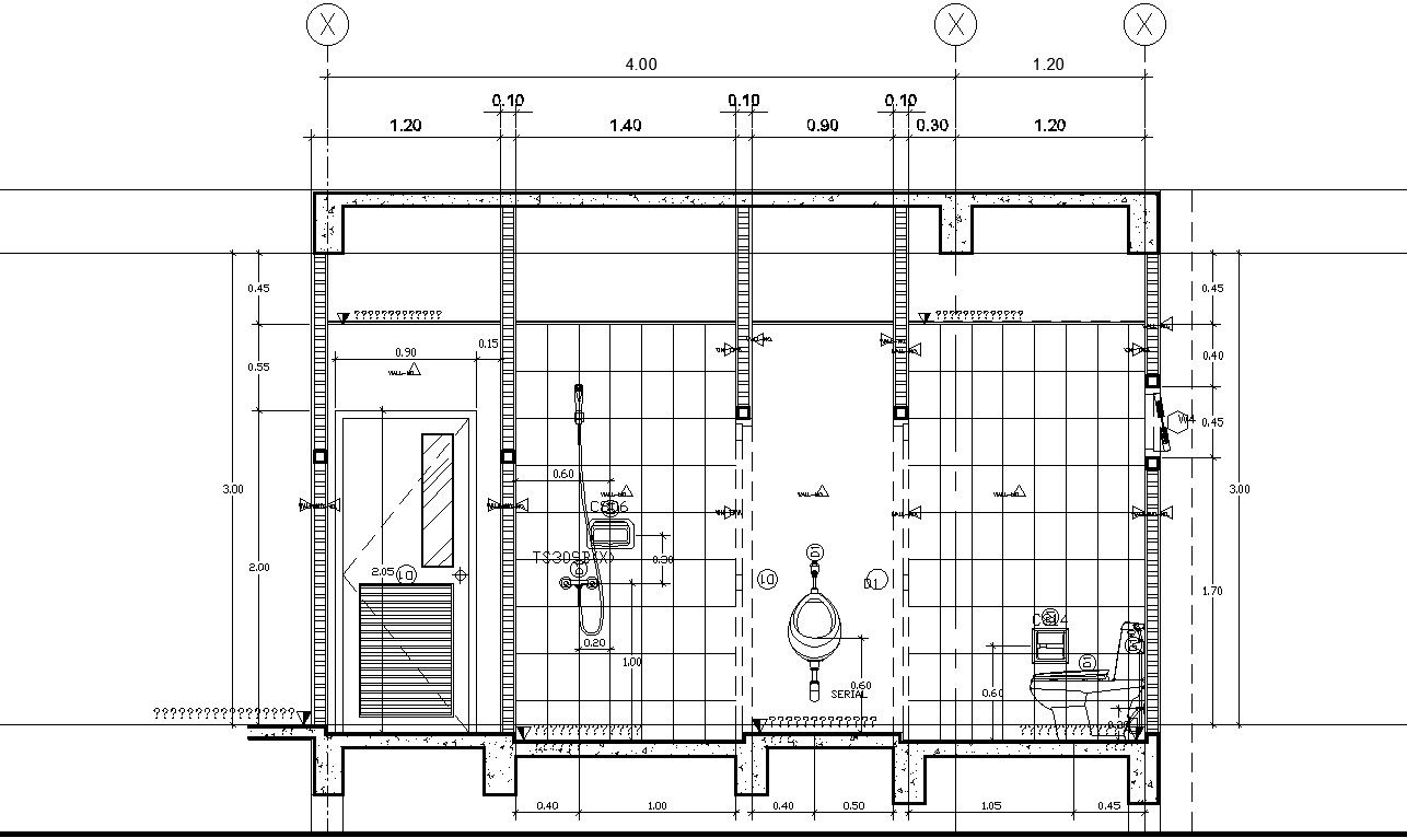 This architectural drawing is Front elevation of toilet-bathroom in detail AutoCAD drawing, dwg file, CAD file. In this drawing there were 0.90x2.0m door section given. There were total size of the section is 5.20x3m is given. For more details and information download the drawing file.