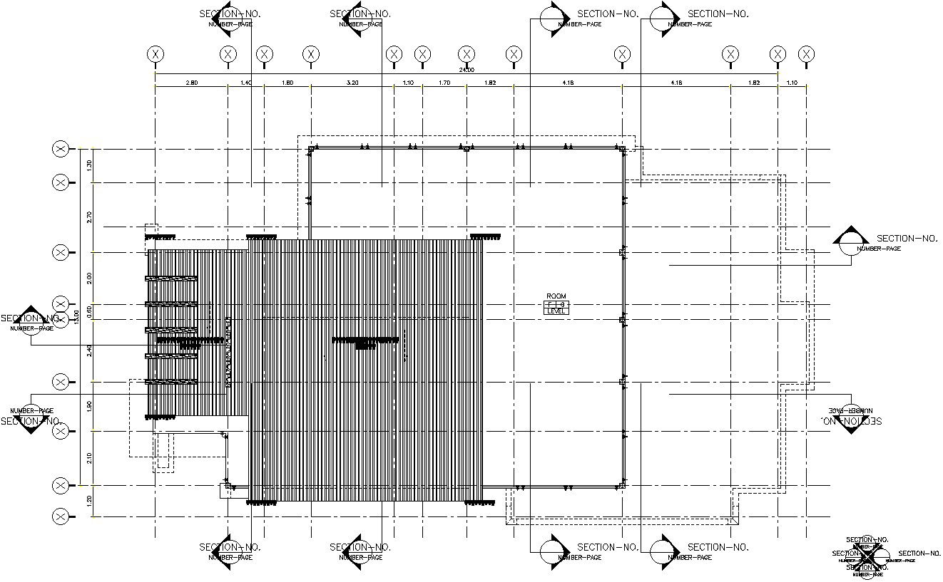 This architectural drawing is Frame plan of first floor of restaurant in detail AutoCAD drawing, dwg file, CAD file. In this drawing there were section drawing, floor plan, staircase section etc. are given with details. For more details and information download the drawing file.