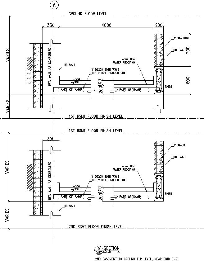 Reinforced concrete wall details in AutoCAD, dwg files.