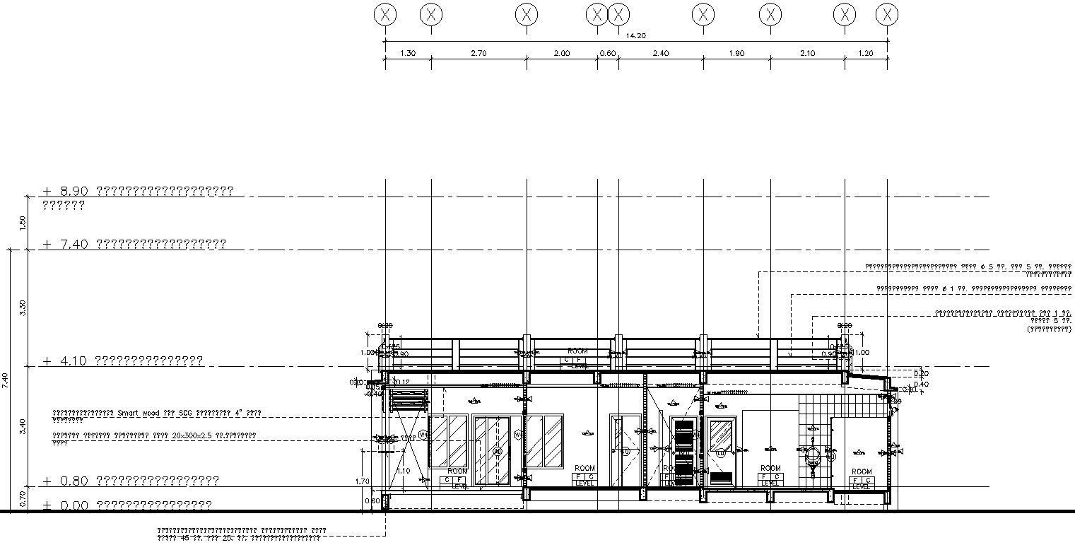 This architectural drawing is Front elevation of ground floor plan in detail AutoCAD drawing, dwg file, CAD file. In this drawing there were size of the section is 14.20x7.40m is given. For more details and information download the drawing file.