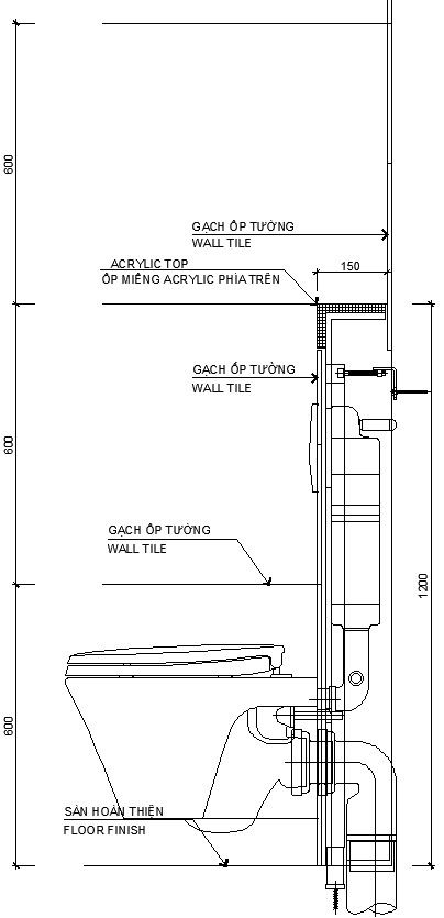 Side elevation of WC wall in AutoCAD, Dwg file.