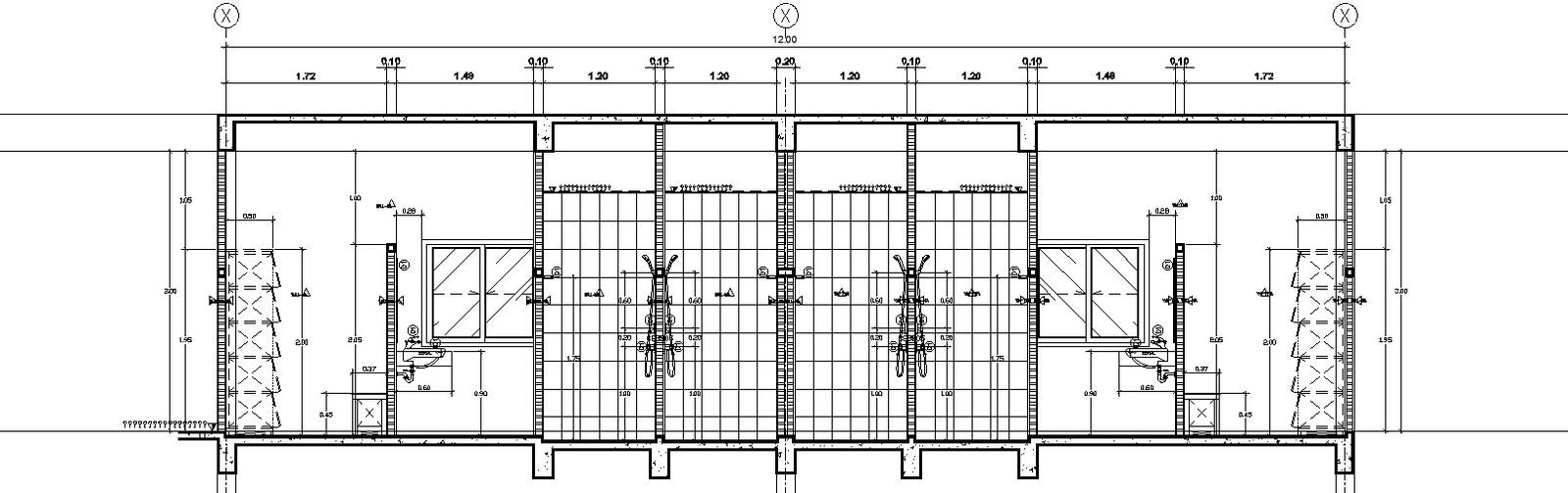 This architectural drawing is Side view of public toilet in detail AutoCAD drawing, dwg file, CAD file. In this drawing there were size of the section is 12x3m is given. There were washbasin section, bathroom section, ventilator etc. are given with details. For more details and information download the drawing file.
