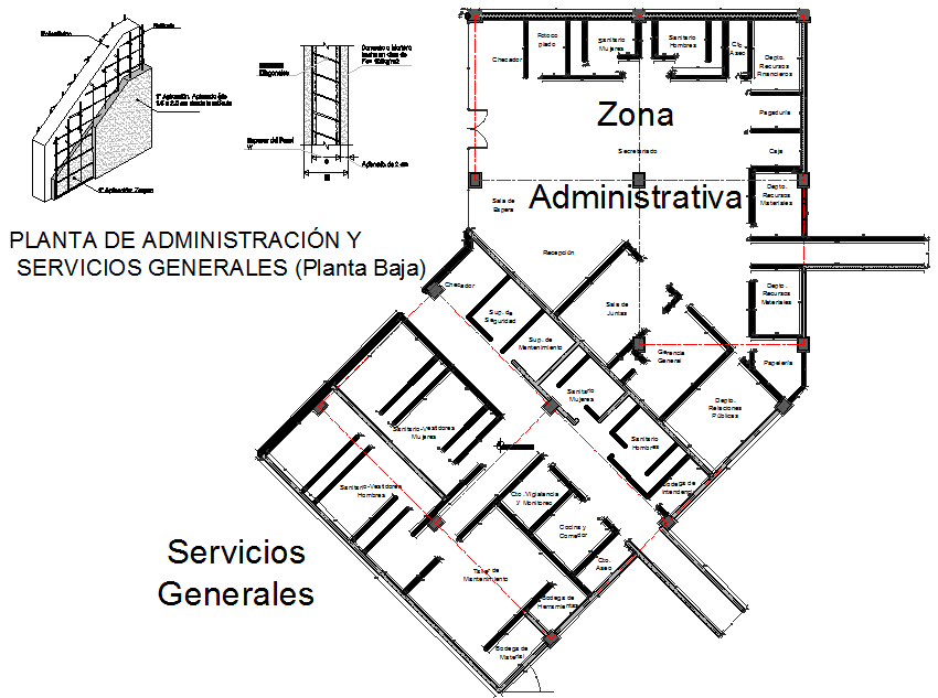 Masonry Office's architecture layout plan with detailing, constructional details.