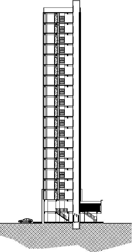 Side elevation of 20 story building in AutoCAD, dwg file.
