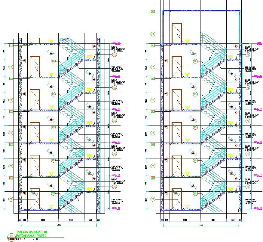 This Architectural Drawing is AutoCAD 2d drawing of Staircase detail section drawing in AutoCAD, dwg file. A staircase, often known as a stairway, is a set of one or more flights of stairs that connects two floors. It also includes landings, newel posts, handrails, balustrades, and other components. A stairwell is a space with stairs inside that extends vertically through a building. For more details and information download the drawing file.