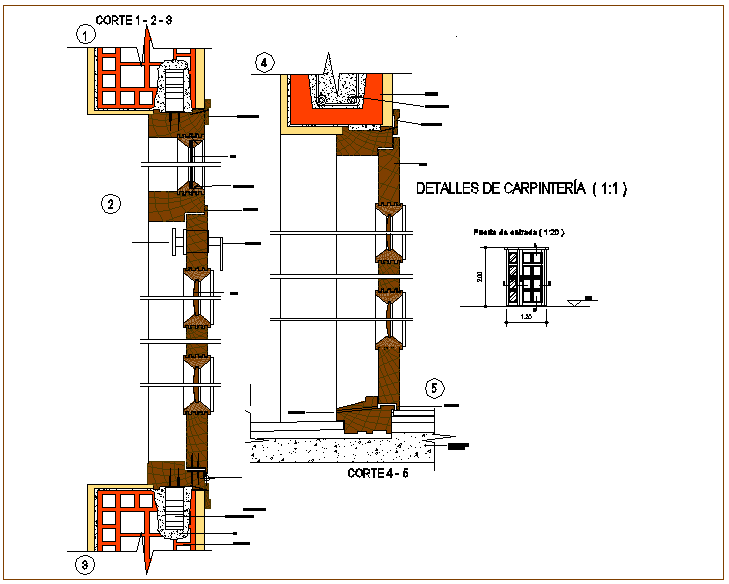 Window and door view with sectional detail dwg file with view of steel arm and nailing