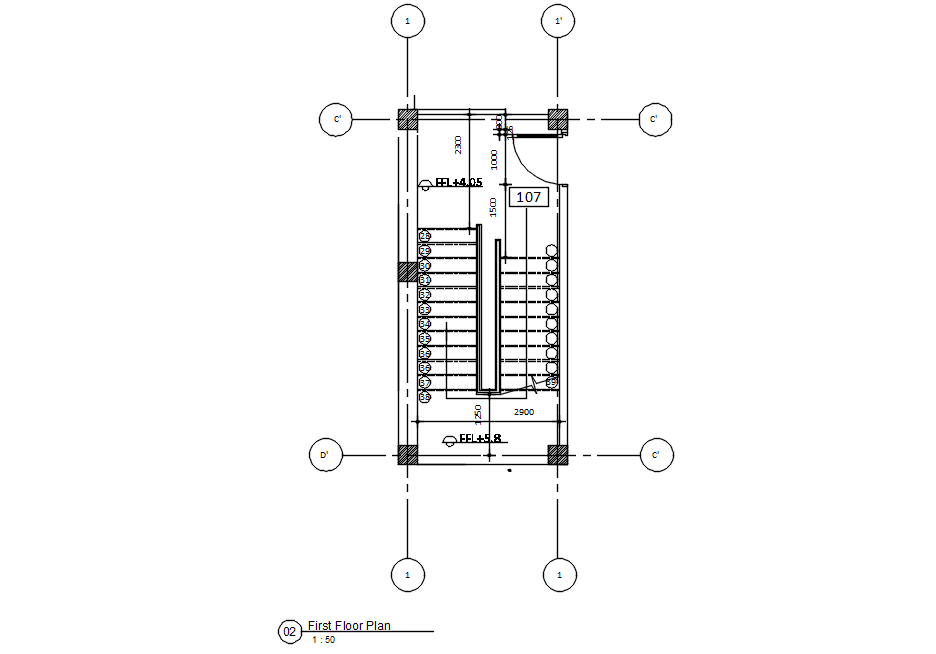 This architectural drawing is Staircase plan of first floor in detail AutoCAD drawing, CAD file, dwg file, 2D drawing. The most common types of stairs are straight stairs, circular stairs, spiral stairs, switchback stairs, winder stairs, split stairs, and stairs with intermediate landings. For more details and information download the drawing file.